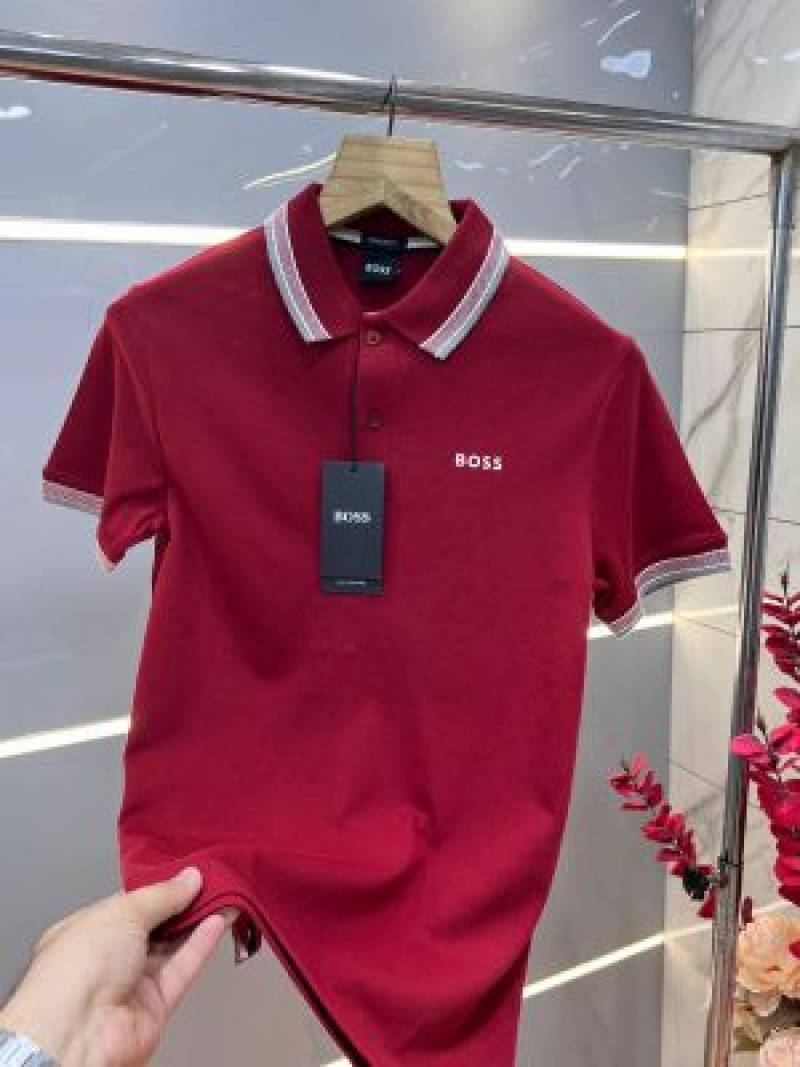 Hugo Bos s Maroon Premium 240 gsm interlock compact cotton fabric Polo Tshirt with Collar Design and Emboss Logo 3363